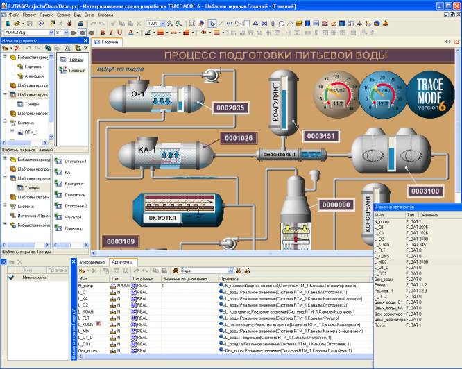 Прежде всего, следует обратить внимание на интегрированную среду разработки (IDE - integrated development environment) проекта TRACE MODE 6. Она объединяет функции всех редакторов - базы каналов (РБК), представления данных (РПД), шаблонов (РШ) и т.д. - в одной программной оболочке. Теперь не нужно, как это было в TRACE MODE 5, переключаться между задачами РПД и РБК и заботится о корректности эти переключений.