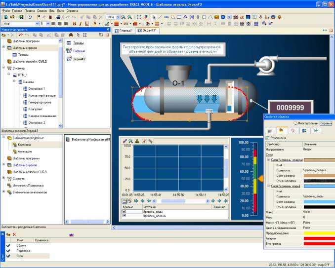 Библиотеки компонентов представляют собой мощное средство тиражирования готовых решений, и не только в области операторского интерфейса. Библиотеки компонентов состоят из объектов, каждый из которых представляет собой проект TRACE MODE 6 в миниатюре, он может включать не только экраны, но и каналы, программы и прочие компоненты, между которыми сохраняются вcе связи.