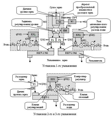 Рис. 1. Структурная схема установок для увлажнения зерна