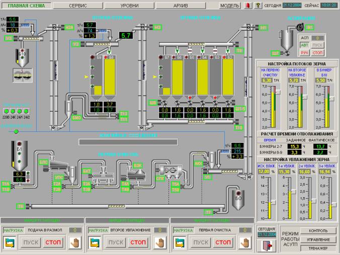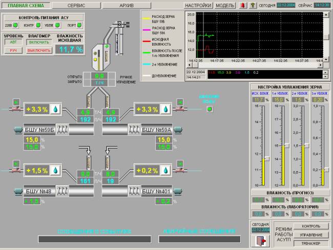 Рис. 2. Интерфейс оператора АСУТП увлажнения зерна