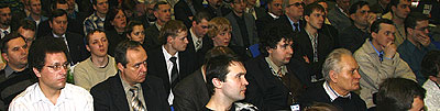 TRACE MODE Data Center транслировал работу конференционной АСУТП в интернет, где Online-участники шоу могли удаленно наблюдать, что несмотря на помехи, на клиентских ПК системы Конференция TRACE MODE 2007 стрелокпроисходит стабильное отображение технологического процесса, а восстановление работоспособности контроллеров происходит за миллисекунды. Конференция TRACE MODE 2007 аудитория